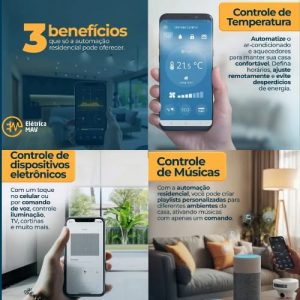 🛜 Com poucos cliques ou comandos de voz, você pode ligar e desligar dispositivos eletrônicos, ajustar a temperatura dos ambientes e até controlar suas músicas preferidas – tudo de maneira prática e eficiente.